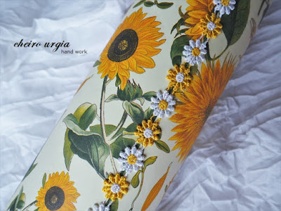 Oooo krasna reciklaža, sončnice so pa res primeren motiv za škatlo polno šagetov. TOP.